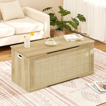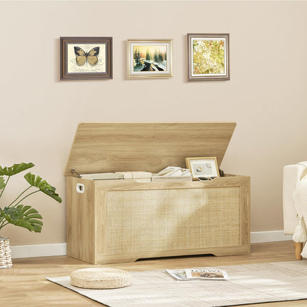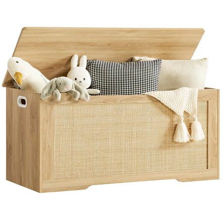 usikey 39.4” Storage Chest, Toy Box with 2 Safety Hinges, Toy Chest for Bedroom, Storage Bench with Storage, Shoe Bench, Supports 220 lb, for Living Room, Entryway, Natural