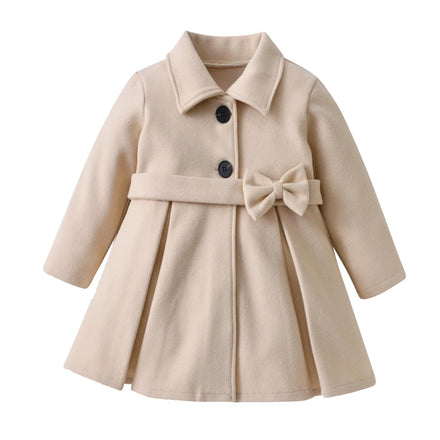USKIDKK Toddler Baby Girl Clothes Jacket Coat Long Sleeve Solid Color Buttons Dress Coat Fall Winter Outfit (Beige,1-2T)