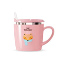 Valueder Baby Kids Toddler Sippy Cup Mug for Milk, Coffee, Stainless Steel Trainer Straw Cup with Lid, Fox, 7oz/Pink