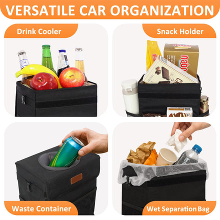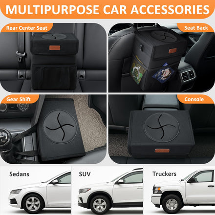 • Wide Compatibility: An thoughtful solution for people who have the need for car neat and car interior storage; Perfectly fits varieties of types of vehicles including sedans, SUVs, RVs, trucks, vans, minivans, boats, campers, taxis, buses, etc; Auto trash can for car is very sturdy , has a long service life, and is very convenient to carry; The car trash can for the back seat is foldable, when you don't need it, just fold it up without taking up any space