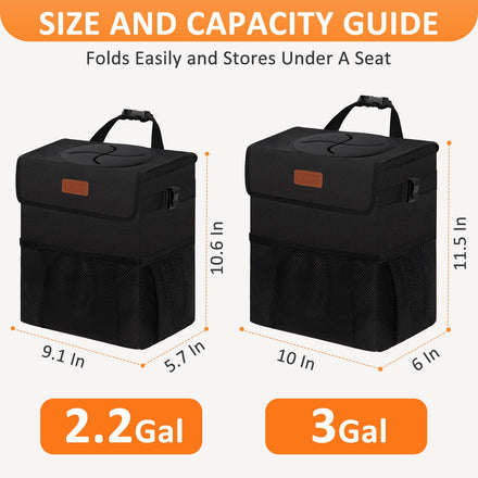• Intimate Design& Capacity: There are 2 side clasps for fixing disposable bags, effectively preventing falling out; Vankor car trash bags have about 2.2 and 3.0 Gallons for storage of car garbage or other stuff; Car trash bin has 100% leak-proof PEVA thick lining, no spillages will happen and is easy to be cleaned; The extra-large opening is made of elastic soft rubber, very roomy and easier to put litter into the bag, and helps to keep trash from spilling