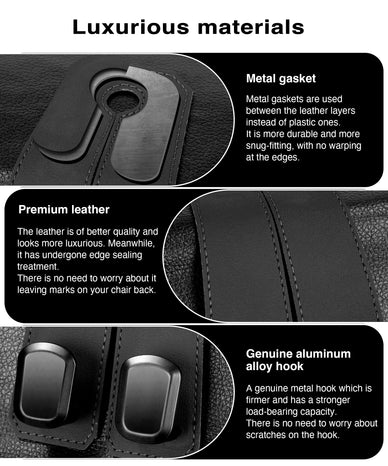 • 【100% Metal accessories】VETERBONE Car Hooks for Headrest is genuine metal. The protruding hook is excellent aluminum alloy. A metal gasket is sewn inside the joint with the headrest adjustment rod. Compared to plastic Car Purse Hooks, it's more durable, has stronger load-bearing capacity and can hold more. We are committed to providing products of exceptional quality and will never settle for inferior materials.