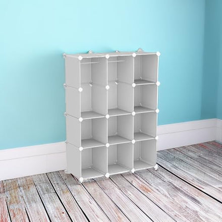 VIPZONE Baby Dresser, Kids Closet Organizers, Portable Kids Wardrobe for Closet, Bedroom, Nursery, Cubby, Cabinet, Clothes, Dress, Baby Storage Shelf, Armoire Clothes Hanging (12 Cube, White)