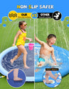 • NON-SLIP DESIGN: When playing with water on splash mat, 4 - 8 ages children are easy to fall and be injured. The non-slip texture is designed to increase grip and allow children to enjoy the water Sprinkler in the backyard while ensuring safety