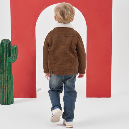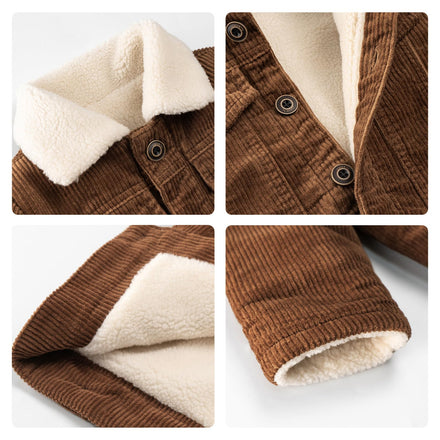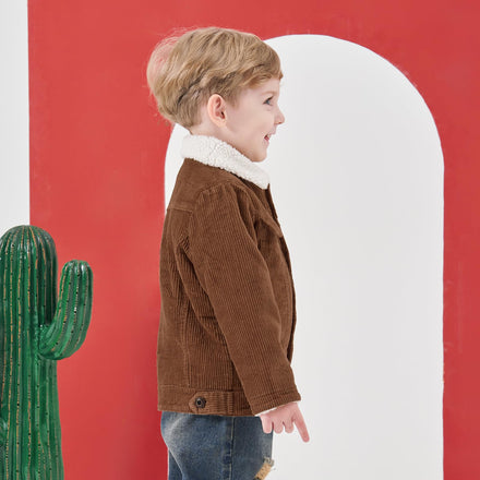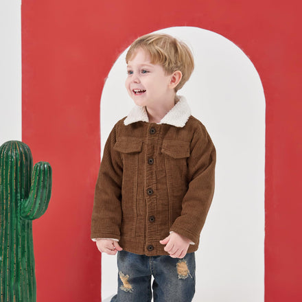 Volunboy Baby Boy Corduroy Jacket Toddler Fleece Winter Coat Kid Sherpa Lined Button Down Warm Outwear (Brown, 12-15 Months)