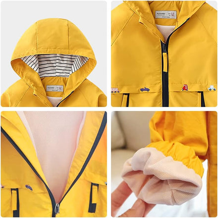 • Fabric: Boys lightweight yellow hooded jacket is made of 100% polyester, stylish and cozy