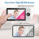 • The monitor's parent unit features an upgraded 720p display, provides a crystal clear wide-angle window into your baby's world. The COMS image sensor with professional IR-Cut auto filter provides True-Color, sharp images in day light, and HD footage, 7x more pixels in night vision.