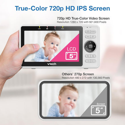 VTech Upgraded Smart WiFi Baby Monitor VM901, 5-inch 720p Display, 1080p Camera, HD NightVision, Fully Remote Pan Tilt Zoom, 2-Way Talk, Free Smart Phone App, Works with iOS, Android