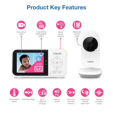 VTech VM819 Baby Monitor with Camera and Audio, 2.8” Screen Portable Baby Camera, Night Vision, 2-Way Audio, Temperature Sensor and Lullabies, Secure Transmission No WiFi, Ideal for Baby/Elderly/Pet
