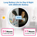 • [LONG-LASTING BABY MONITOR BATTERY LIFE] - With our camera and audio baby monitor's 2600mAh rechargeable battery, you can enjoy up to 17 hours of video streaming or 31 hours of audio-only mode on a single charge. The powerful battery ensures you can monitor your baby throughout the night or even a full day without worrying about running out of power.