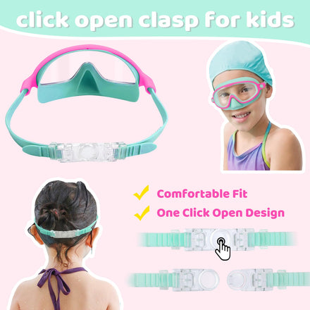 • 【Speed Adjust Clip & Safty 】kids can adjust easily by themselves. The side adjustment clips are user-friendly, gently pull then you can adjust the strap length to the right size. The swim goggles masks are made with high elastic cloth straps, suitable for different facial shapes, no more complaints about the goggles falling off, providing your kids with a safer swim experience.