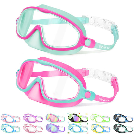 • 【Comfortable Swim Goggles with nose cover 】Your kids will feel so comfortable when wearing the Vvinca swim mask while swimming, snorkeling, or diving. With a soft nose cover, and quality anti-fog lenses, your kids will get a panoramic & clear view underwater. It is perfect for helping build kid's confidence underwater and not be afraid of swimming anymore. Already applied for the patent US-20230157865-A1.