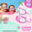 Vvinca 2 Pcs Kids-Swim-Goggles with Nose Cover, Swimming Diving Mask Wide View Anti Fog UV Anti Shattered Lens for Kids 3-6