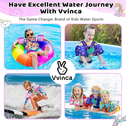Enjoy Water Fun with Vvinca! Our journey began with a simple yet powerful vision: to create swimwear that not only keeps children safe but also inspires confidence and fun in the water. We use only the highest-quality, non-toxic materials to ensure that our swim vests are gentle on delicate skin and provide reliable buoyancy. Choose Vvinca for a toddler swim vest that's not just a product, but a promise of safety, comfort, and unforgettable memories. 1. Wear both to build confidence in water. 2. Use just the sleeves for walking. 3. Wear only the vest to learn swimming. Evenly distributed buoyancy keeps the child upright and stable in the water, making it safer for toddlers (ages 1โ€“5) learning to swim. Designed for children aged 1-3 years, it features a unique triangular cross-strap design for added comfort and breathability. A retro and chic series for summer vacation and pairing with any outfit. With detachable sleeves, it is fully functional and practical. Upgraded toddler swim vest is detachable and with soft cross-strap to ensure safety and prevent the vest from riding up. The most suitable wear for beginner swimmers, with maximum buoyancy, can let the child first feel the feeling of floating in the water, and learn the way of hand and foot paddling, laying a foundation for later learning. With only the arm bands left, buoyancy is reduced and children need to learn how to keep themselves afloat ๏ผŒat that time the arm bands still providing some buoyancy. Reduced the arm bands, less buoyancy but greater range of hand movement, suitable for children with some experience to practice hand and foot paddling movements. Reduced the arm bands, as a back float๏ผŒThe buoyant force acts only on the back but greater range of hand movement, suitable for children with some experience to practice hand and foot paddling movements. Kids Swimming Goggle Kids Swimming Goggle Kids Swimming Goggle Toddler Swim Vest Vvinca Puddle Jumper Vvinca Swim Jacket Vvinca Diving Pool Toys