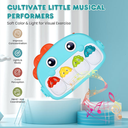 • 👶🏻Multifuntional Baby Gym - the perfect dinosaur shape activity center for your little one! With 5 detachable rattles and a musical piano, your baby can play while lying, sitting, or kicking, keeping them entertained for hours.