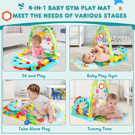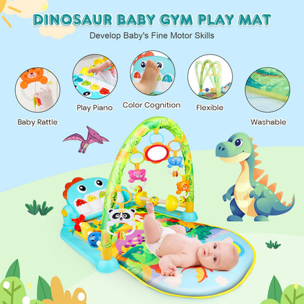 VZO Baby Gyms Play Mats, Infant Play Mat and Activity Gym, Baby Play Piano Gym Mat, Play Mats for Babies Newborns and Toddlers, Tummy Time Activity Mat Toys 0-3-6-12 Months (Dinosaur)