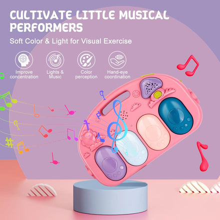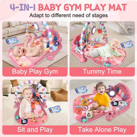 VZO Baby Gyms Play Mats, Infant Play Mat and Activity Gym, Baby Play Piano Gym Mat, Play Mats for Babies Newborns and Toddlers, Tummy Time Activity Mat Toys 0-3-6-12 Months (Pink)