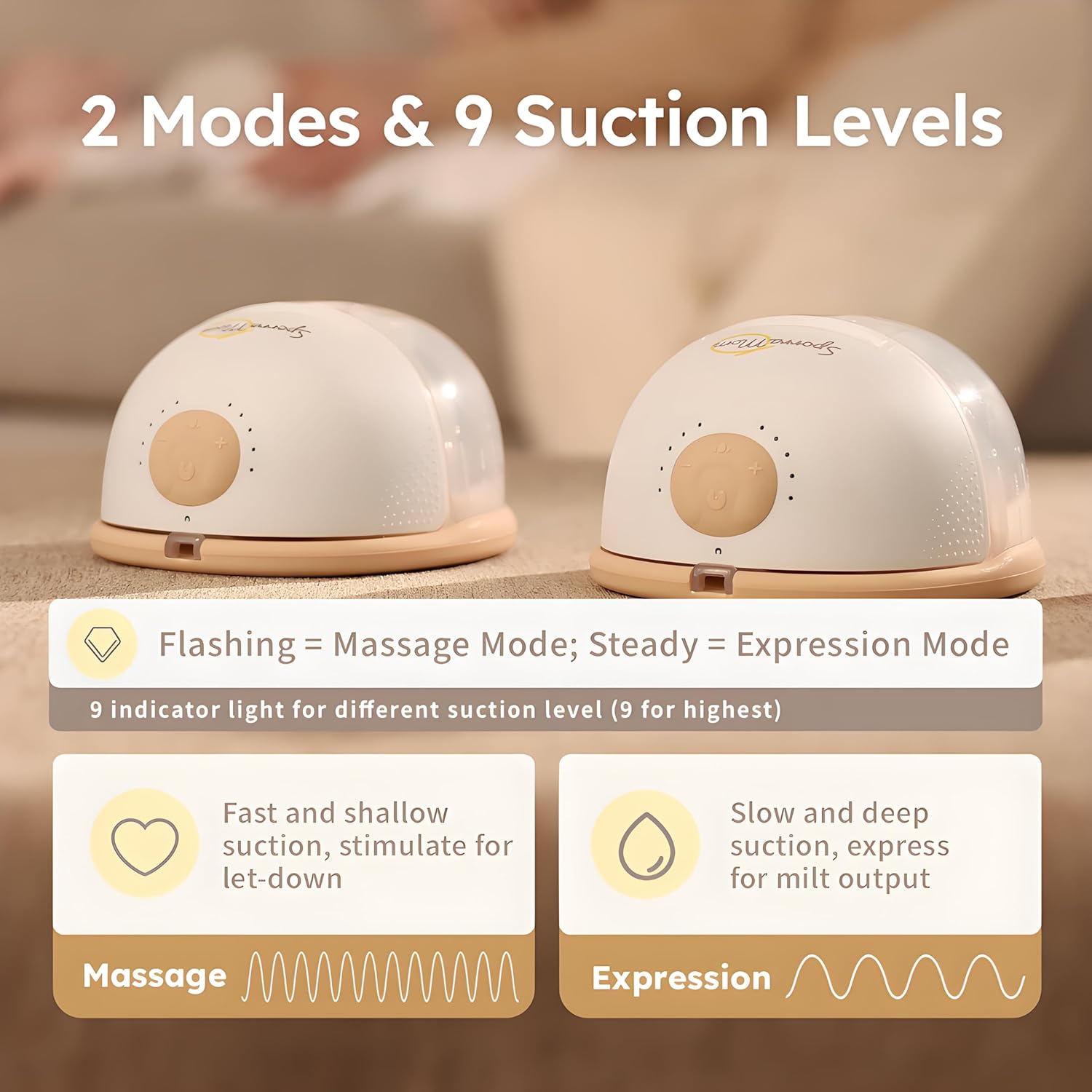 • Boost Milk Flow Comfortably‌: The W2 wearable breast pump features advanced heated technology to stimulate natural milk secretion while ensuring gentle comfort. With ‌2 customizable modes (Massage & Expression)‌ and ‌9 adjustable suction levels‌, you can personalize every session for maximum efficiency. Plus, the W2 remembers your preferred settings—so each pumping session starts right where you left off, saving you time and hassle