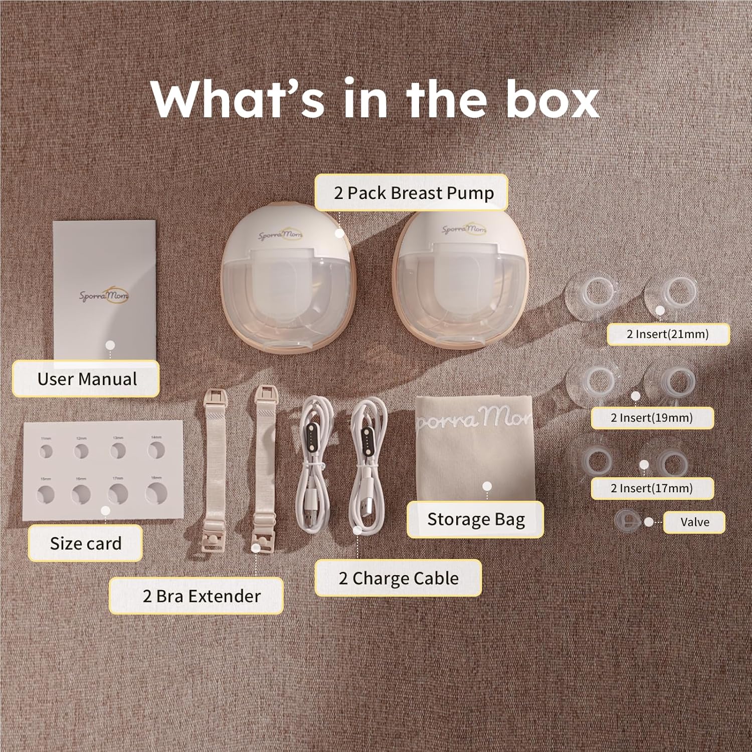 • SporraMom W2 Breast Pump delivers personalized comfort with 4 included flange sizes (17/19/21/24mm) to perfectly fit all breast shapes. With minimal, easy-clean parts, enjoy effortless pumping and more precious time with your little one