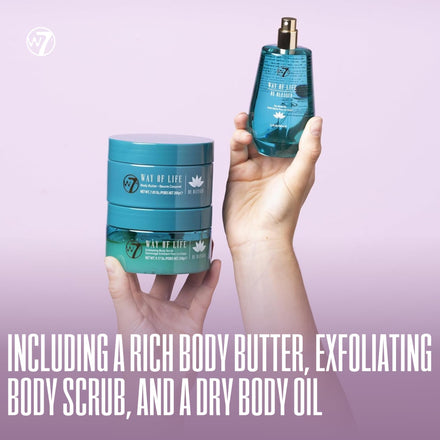 W7 Way of Life Body Care Set | Exfoliating Scrub, Hydrating Body Oil & Nourishing Body Butter | Luxury Skincare for Glowing Skin | Full Size, Long Lasting Products to Use at Home