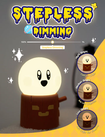 • 【Adjustable Brightness Candle Light】Anime Ghost Kids Night Light Has Two Modes, One Emits a Soft Warm Yellow Light and the Other Is a Candle Flame Light Which Flickers like an LED Candle Lamp, Both Modes Are Infinitely Dimmable to Match the Ambiance You Want, Whether It's a Subtle Glow or a Bold Statement.