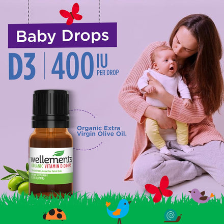 Wellements Baby Organic Vitamin D Drops for Infants & Toddlers (0.15 Fl Oz) - Certified Newborn+ Liquid Vitamin D3 Drops, Support Healthy Growth & Bone Development (1 Drop Daily & 400 IU Per Serving)