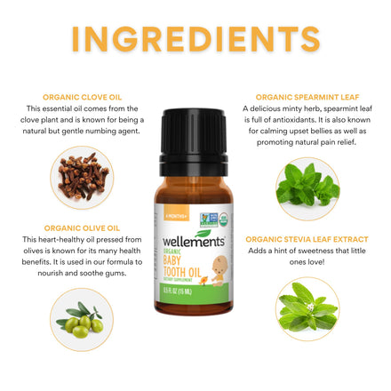Wellements Organic Baby Tooth Oil | Soothing Massage Oil for Tiny Gums, Helps Make Teething Happy, Made with Safe and Effective Certified Organic Ingredients | 0.5 Fl Oz. 4 Months +