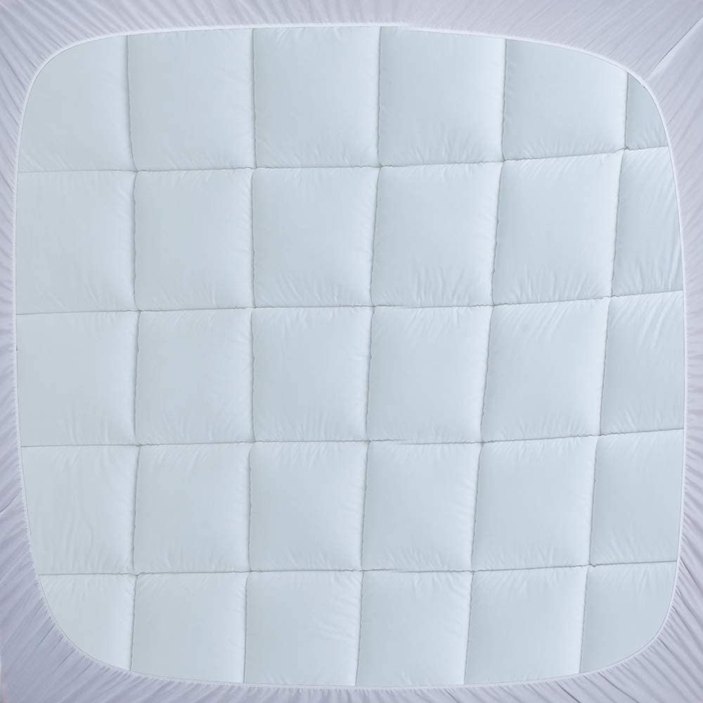 WhatsBedding Cotton Waterproof Mattress Pad Queen Size Top Down Alternative Filling Pillowtop Mattress Topper Cover-Fitted Quilted (Mattress Pad Queen)