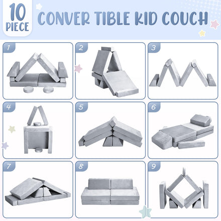 - Safe & Sturdy Structure:Our modular kids sofa couch is made high-quality sponge, which is highly elastic,safety, very soft and light.The kids sofa couch can be used as a chair, fort, tunnel, mat, couch, sofa, or anything you want it to be