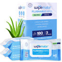 Wipemate ULTRA Flushable Butt Wipes, Soothing Vitamin E & Aloe, 99% Water, Aloe Vera Scent Premium Super Soft Hygiene Wipes, Septic & Sewer Safe, 3 Premium Flip-Top Packs (180ct)
