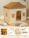 WIRHAO Kids Tent with Padded Mat Kids Playhouse Tent 2 in 1, Kids Play Tent Large Space Indoor with 2 Doors and 4 Windows for Girls Boys with Stars Lights, Carry Bag, Banner Flag (Brown, 2 in 1)