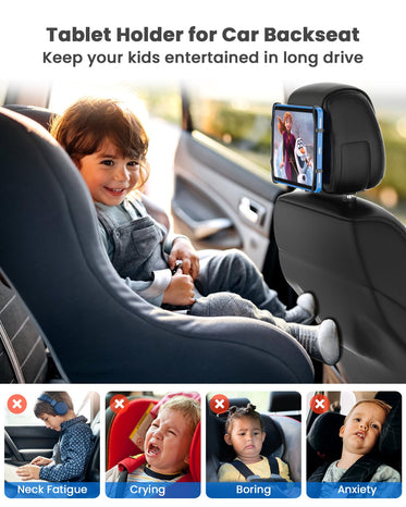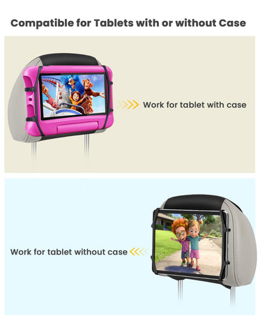 • 【Perfect Companion for Car Travel】This headrest tablet holder can be installed in car backseat and hold your kids tablets tightly. Not only can keep your kids entertained in the whole long boring driving trip but also can avoid neck fatigue and arm injury of holding a tablet for long time. No need to worry about your child will throw a tantrum or cry anymore in road travel so you can focus on driving for a safer journey