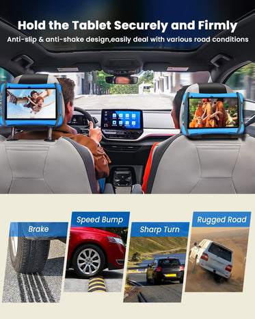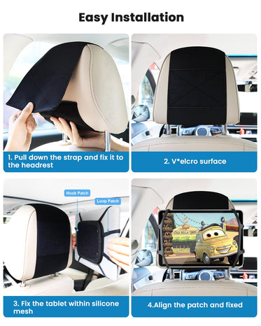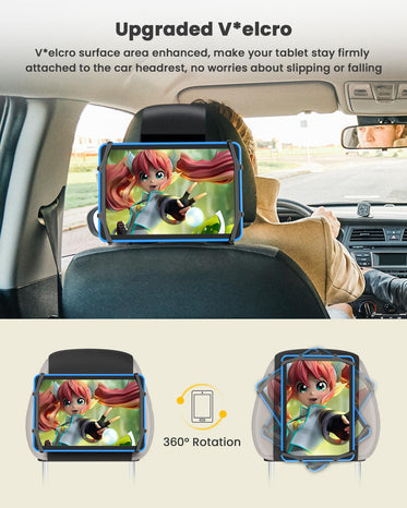 • 【Upgraded V*elcro & No Slip】We've enhanced the v*elcro surface area on the car tablet holder, ensuring a stronger bond with the silicone holding net. Your tablet will stay firmly attached to the car headrest, even during speed bumps or rough roads. Say goodbye to worries about slips or falls—travel with confidence!