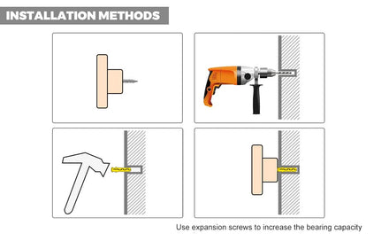 • 【WALL HOOKS SPECIAL DESIGN】Considering the convenience of use of our wooden hook, we have designed two installation methods.You can choose different methods according to different usage scenarios.Use expansion screws to increase the bearing capacity. Also, use non-marking stickers,do not hurt the wall