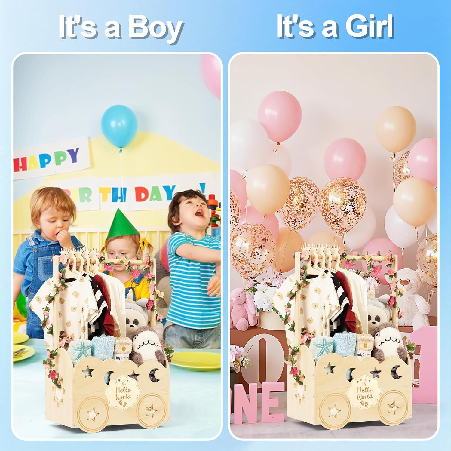 - π Personalized Baby Gift: This wooden baby shower basket has a notice board can be customized with the babyβs name, birth date making it a unique and sentimental keepsake for new parents.