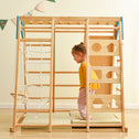Mild Wooden Toy - This wooden swing and slide playset for kids is made of mild wood and has a smooth and gentle surface; which is very suitable as a home toy climbing and crawling facility for children to touch.Full-Featured Super Toy - This well-designed wooden playset combines 8 main play function parts: a climbing ladder; a wooden slide; a wooden climbing rock wall; a set of monkey bar crawling ladders; a rope wall climb; a rope ladder; a set of the geometric climbing wall; and a wooden swing. Every part has been carefully designed and polished to cater to children's favorite play interests.STURDY & SOLID - This wooden swing slide set adopts the most stable triangular trapezoid support structure; which can fully support kids' playful nature and endless energy on it.Scientific and Practical: Under the scientific structural design and functional combination; all the play functions of this set of wooden playsets can help children better develop physical coordination and physical vitality; and can also help them develop synergy when playing with their friends; is an indispensable set of comprehensive equipment in excellent family education.The Best Gift - The maximum size of this wooden jungle gym playset is about 47.2x42.5x47.2inch when it is fully expanded. It is a well-deserved best gift for children to play at home this new year!