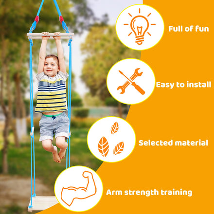 • The applicable age range is wide. When children are between 2 and 6 years old, it can be used as a wooden swing. When children are 6 years old and above, it can be used as a surfing swing. And when it is used to exercise children's arm strength and body flexibility, it can also serve as a pull-up bar.