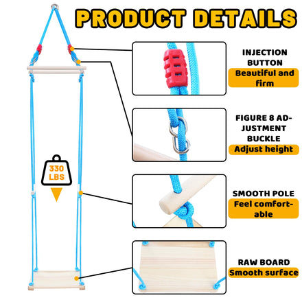Wooden Swing-Skateboard Swing for Kids,3-in-1 Standing Swing, Exercise Balance and Body Coordination,Tree Swing for Outdoor (Blue Rope)