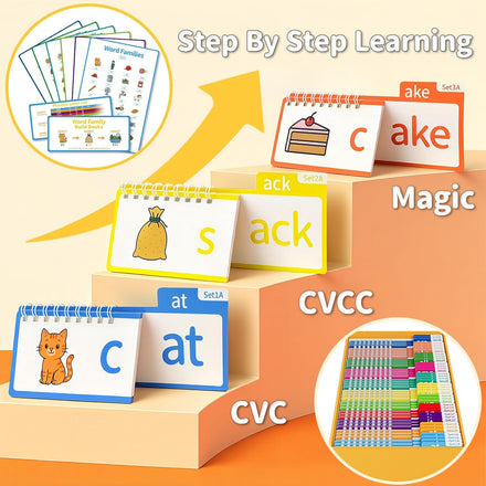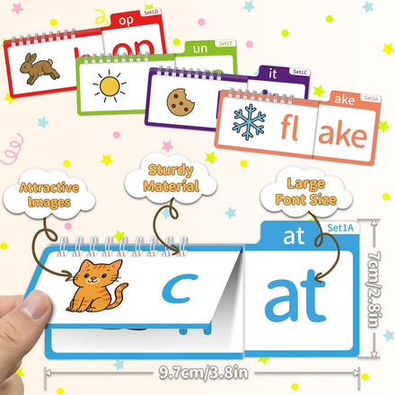 • Word Family Categorization: Flip books group words by shared phonics features (e.g., pl- blends, sh- digraphs, -ay long vowels). This guides kids to build logical links between "letters, sounds, and words." Acting as both a word family learning tool and flash cards, it helps children efficiently accumulate vocabulary, deepen phonics understanding, and "master one pattern to recognize a group of words."