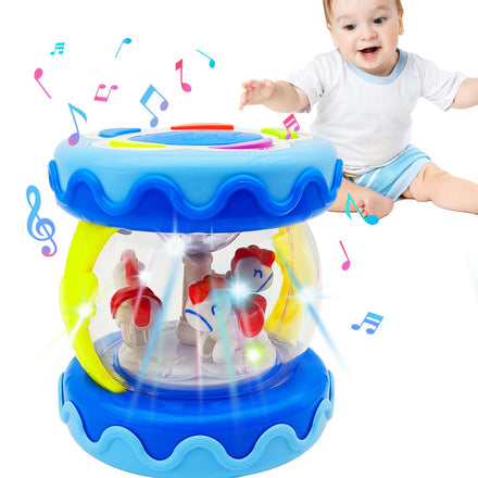 WSJKPA Baby Toys Carousel Rotating Light Up Infant Toys 18+ Months, Tummy Time Toys for Babies 18-36 Months, Musical Crawling Toy for Toddlers 2 3 Years Old (Blue)
