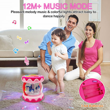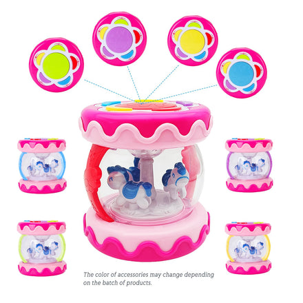 WSJKPA Baby Toys Carousel Rotating Light Up Infant Toys, Musical Crawling Toy for Toddlers (Pink, 18+ Months - 3 Years, 2 AA Batteries)