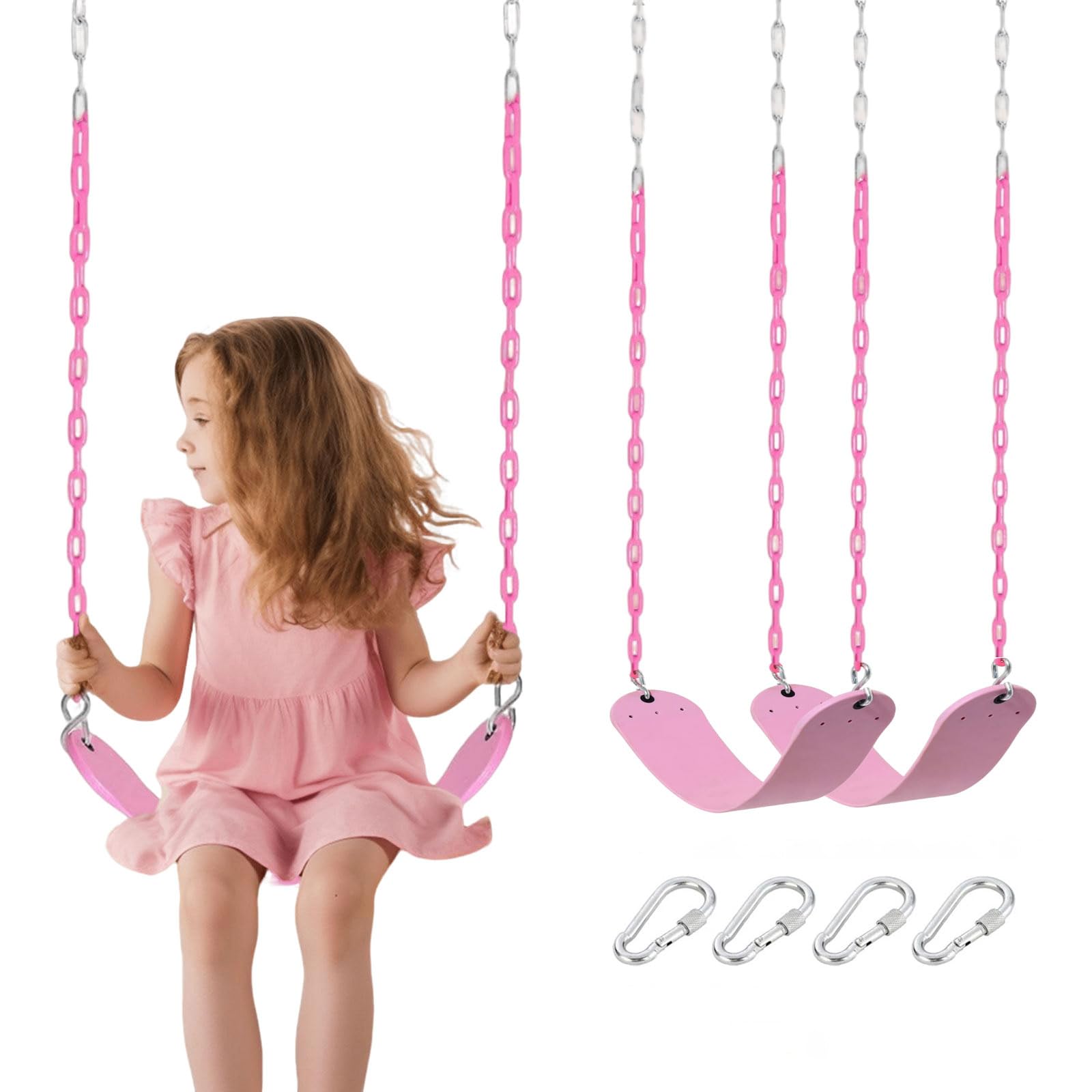 • Swing Set Components: The package comprises 2 pre-assembled plastic seats for children's swings and 4 metal buckles.