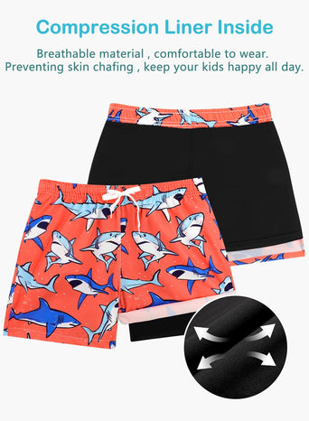 • 【Stretch Liner】nice elasticity boys swim trunks with compression liner are more comfortable than regular gusset mesh linings and help protect boys' private parts and prevent exposure. Adapt to various large movements and play of children. Allowing boys' adorable nature to be fully unleashed.