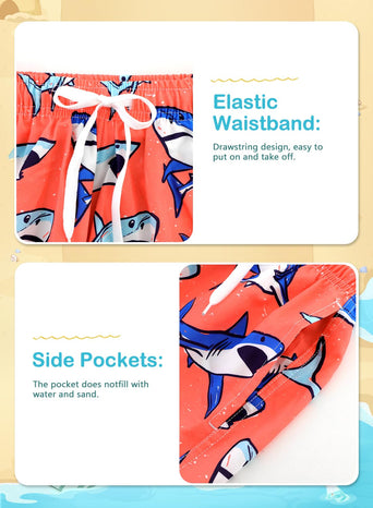 • 【Unique Printing Design】The boys' swimming trunks adopt the latest design and unique printing patterns. We have BeachTree/ HawaiianLeaves/ RainbowTree/Flamingos/Fish. These innovative and comfortable kids bathing suits feature a Hawaiian-inspired print that makes a stylish statement.