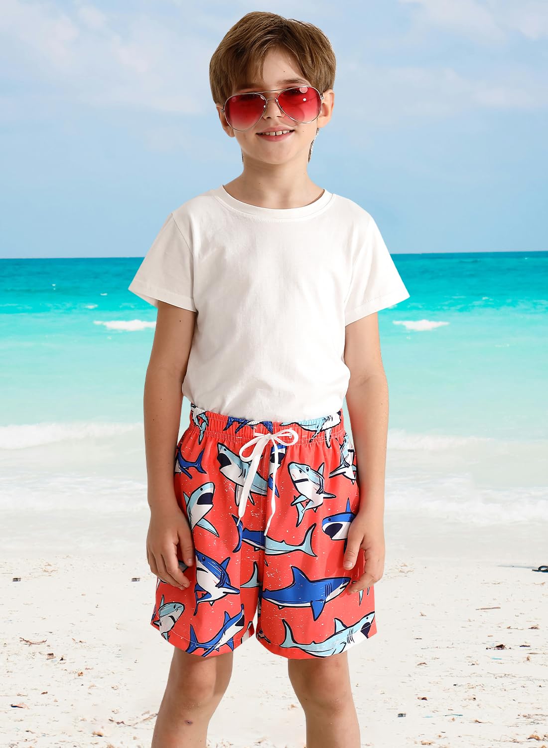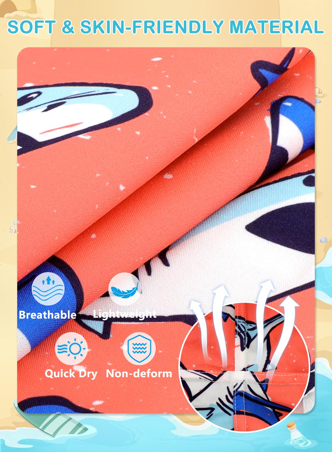 • 【Soft Fabric】XiaoMoSha boys swim trunks are made of 95% Polyester, 5% Spandex with a silky smooth boxer compression lining that is lightweight and quick-drying. Meanwhile, UPF 50+ boys' swimwear can effectively prevent the UV rays.