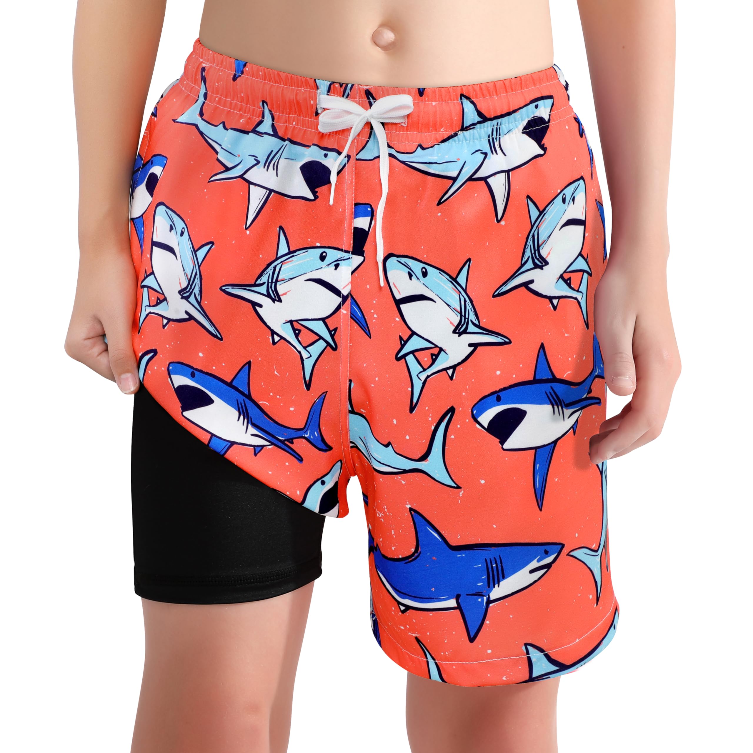 • 【Multi Occasions】Kids Swim Shorts 2 in 1 Beach Stretch Swimsuit are suitable for ages 4 to 16. Boys beach shorts have bright colors, easy to find in the sea or beach. a must-have for your boys' summer vacation, beach, swimming lessons, surfing, workout, walking, running. And these boys' compression swim shorts are perfect for summer beaches, water parks, pool parties, sports or training.