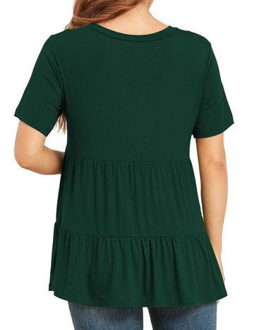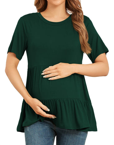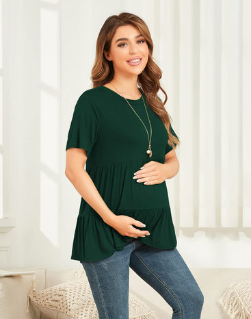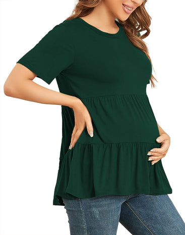 Xpenyo Women Tiered Maternity Top Fashion Short Sleeve Casual Pregnancy Blouse Shirts Deep Green M