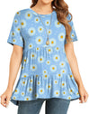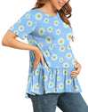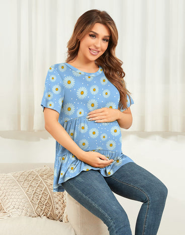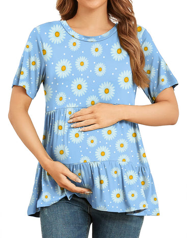 Xpenyo Women Tiered Maternity Top Fashion Short Sleeve Casual Pregnancy Blouse Shirts Light Blue Daisy S