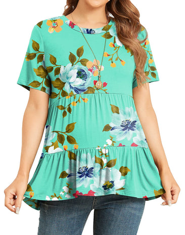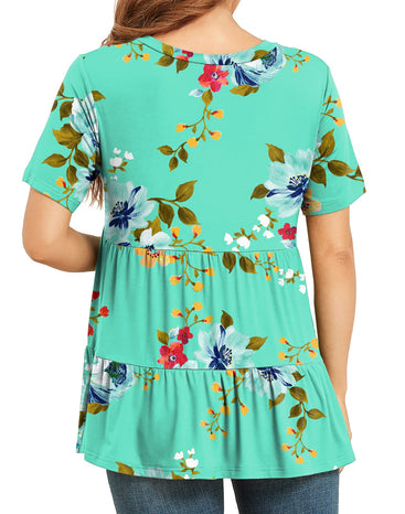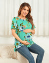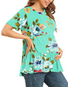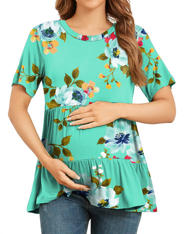 Xpenyo Women Tiered Maternity Top Fashion Short Sleeve Casual Pregnancy Blouse Shirts Mint Green Floral XL