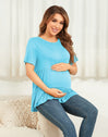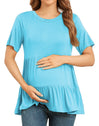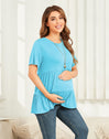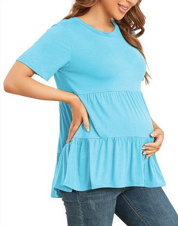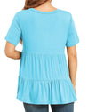 Xpenyo Women Tiered Maternity Top Fashion Short Sleeve Casual Pregnancy Blouse Shirts Nile Blue XL